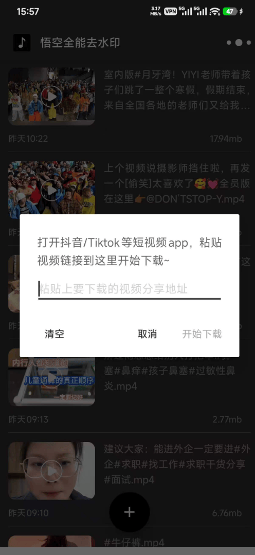 使用方法 在短视频APP中复制视频链接 打开本工具,粘贴链接 点击解析,即可下载无水印视频